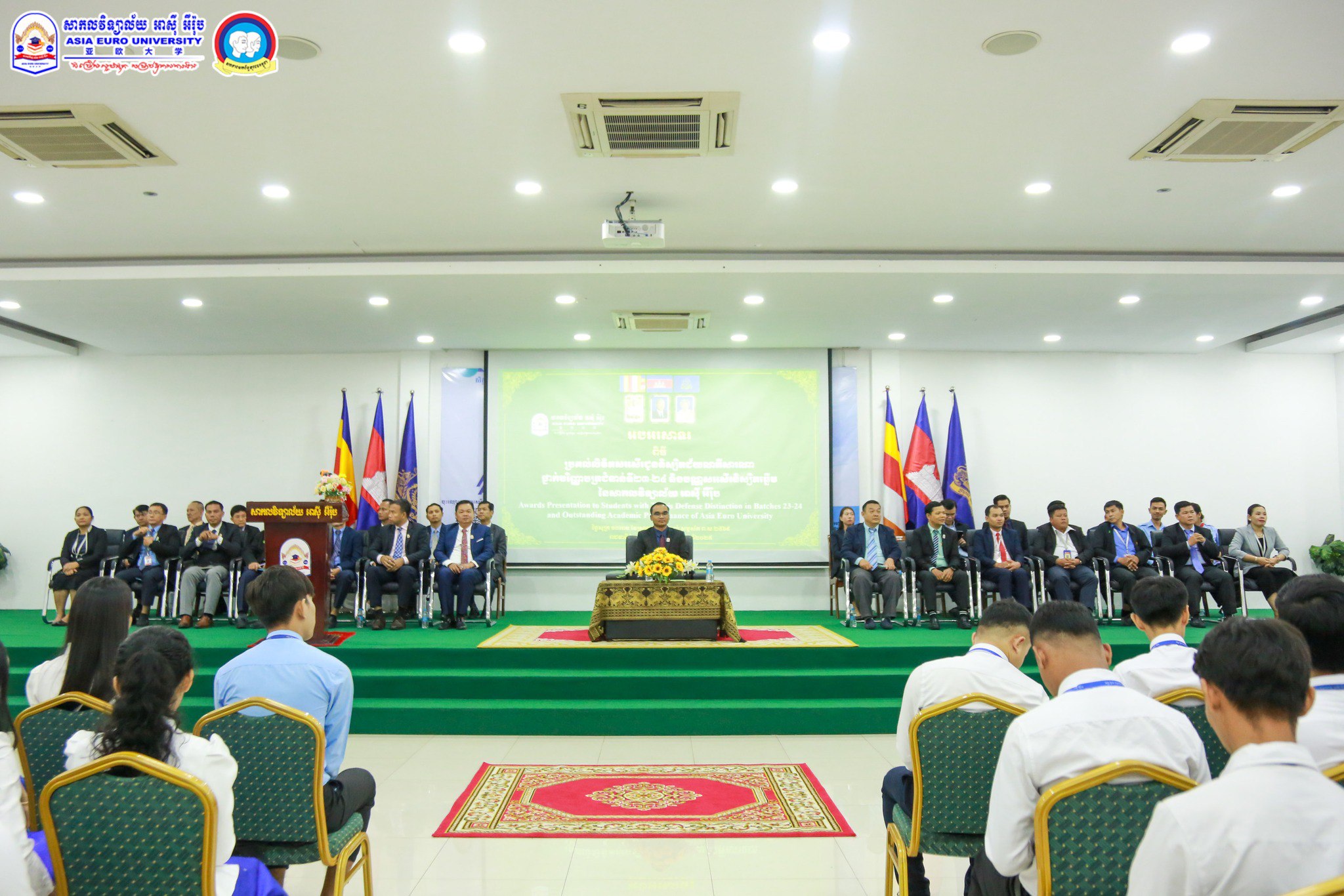 (ភ្នំពេញ)៖ លោក ស៊ុន សេដ្ឋា សាកលវិទ្យាធិការតំណាងអ្នកឧកញ៉ា លី ឃុនថៃ ប្រធានក្រុមប្រឹក្សាភិបាលនៃសាកលវិទ្យាល័យ អាស៊ី អឺរ៉ុប ត្រូវនឹងថ្ងៃទី២២ ខែសីហា ឆ្នាំ២០២៥ នេះ បានអញ្ជើញប្រគល់លិខិតសរសើរជូននិសិ្សតជ័យលាភីសារណាថ្នាក់បរិញ្ញាបត្រជំនាន់ទី២៣-២៤ ក្នុងមហាវិទ្យាល័យគ្រប់គ្រងពាណិជ្ជកម្ម និងទេសចរណ៍ មហាវិទ្យាល័យសង្គមសាស្រ្ត និងសេដ្ឋកិច្ច និងមហាវិទ្យាល័យវិទ្យាសាស្រ្ត និងបច្ចេកវិទ្យា និងបណ្ណសរសើរនិស្សិតឆ្នើមនៃសាកវិទ្យាល័យ អាស៊ី អឺរ៉ុប។
