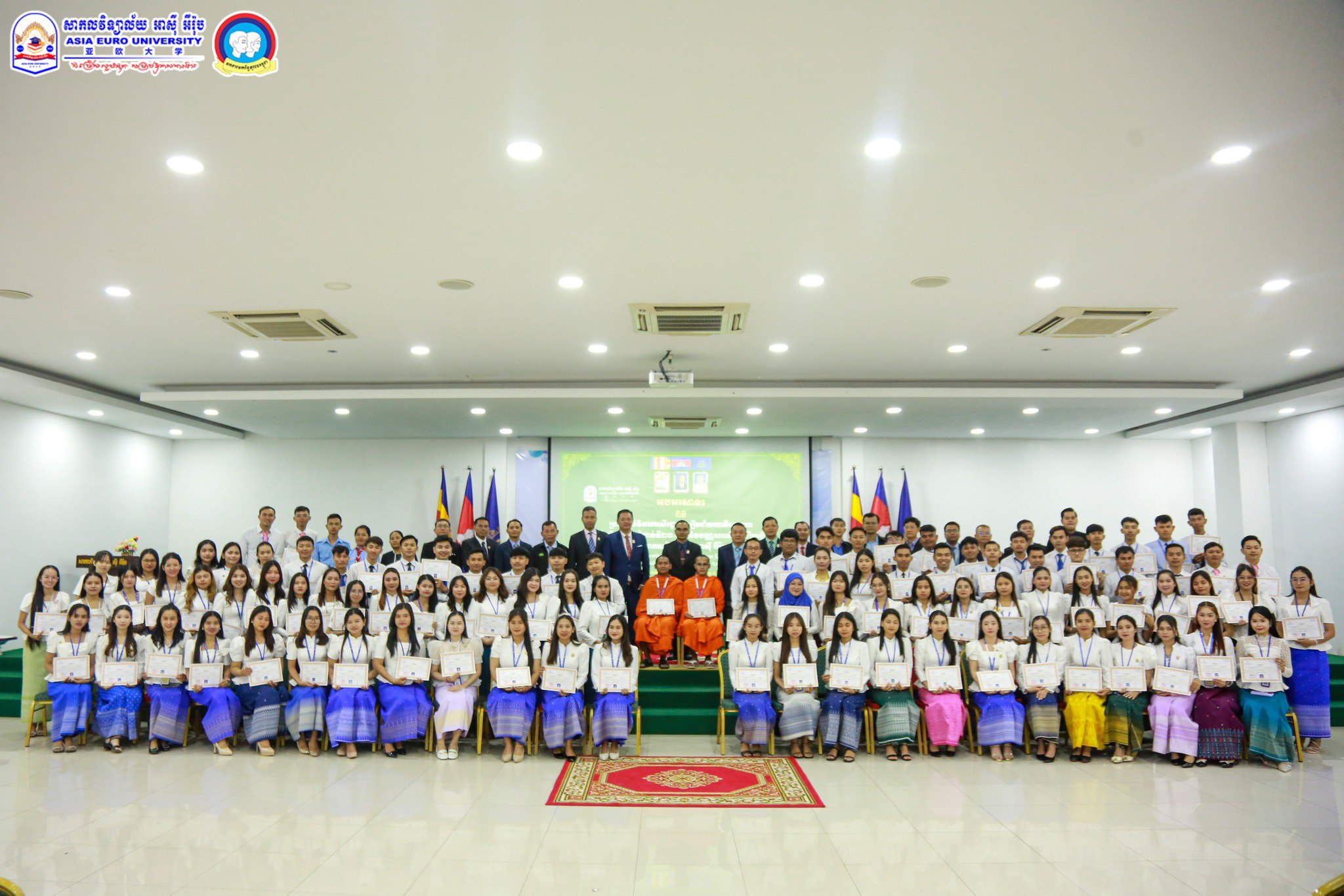 តំណាងអ្នកឧកញ៉ា លី ឃុនថៃ ប្រគល់លិខិតសរសើរជូននិសិ្សតជ័យលាភីសារណាថ្នាក់បរិញ្ញាបត្រជិត ៥០០នាក់ នៃសាកលវិទ្យាល័យ អាស៊ី អឺរ៉ុប
